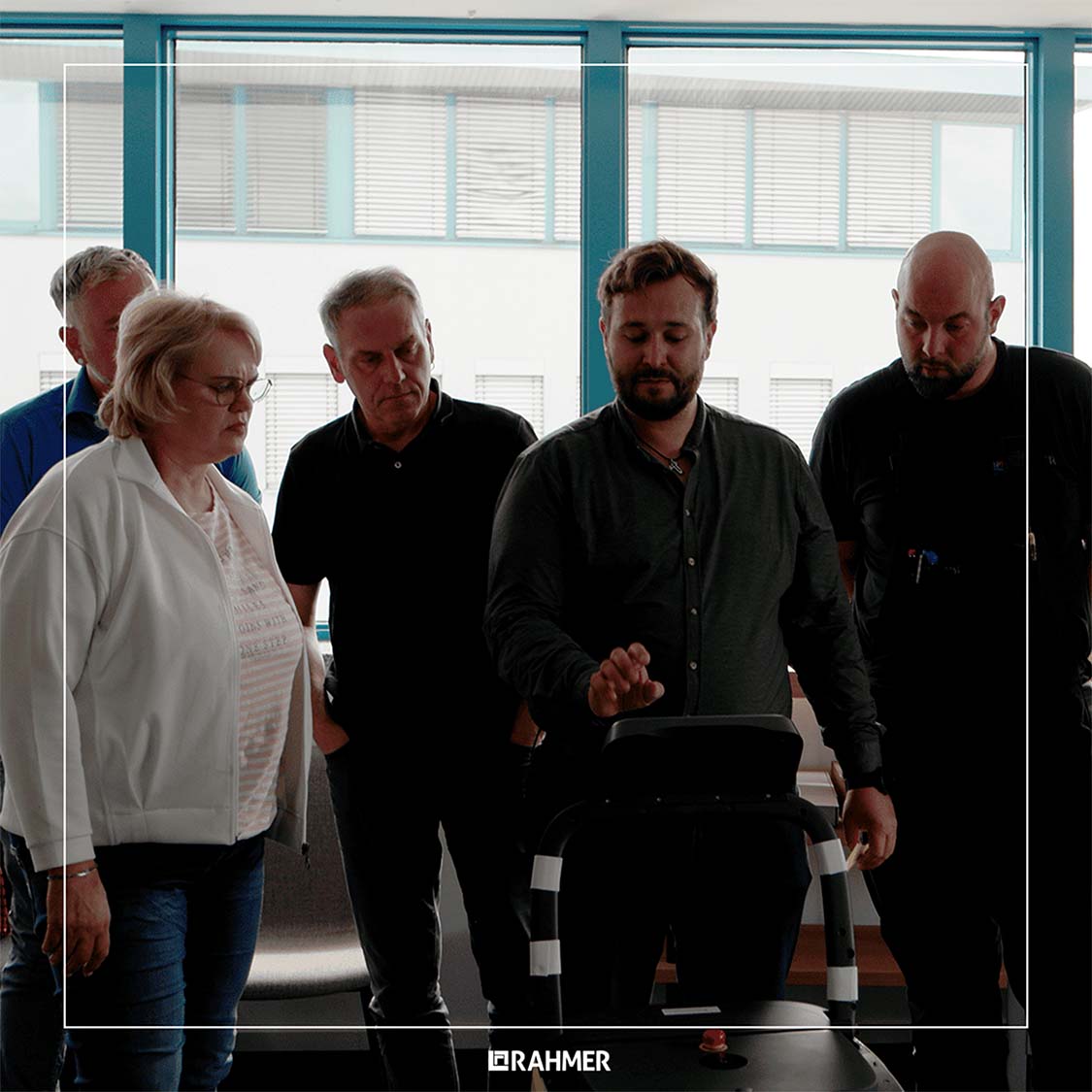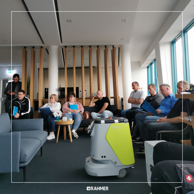 In der Schulung ging es nicht nur um die Theorie: Unsere Teams erhielten eine umfassende technische Einweisung in alle Feinheiten des Roboters. Anschließend ging es in die Praxis – vom Bürstenwechsel über das Handling der Wassertanks bis hin zur Einrichtung eines konkreten Reinigungsbereichs. Mit vollem Engagement und großer Neugier haben sich unsere Reinigungsexpert*innen mit jeder Funktion vertraut gemacht und die Technik intensiv getestet.